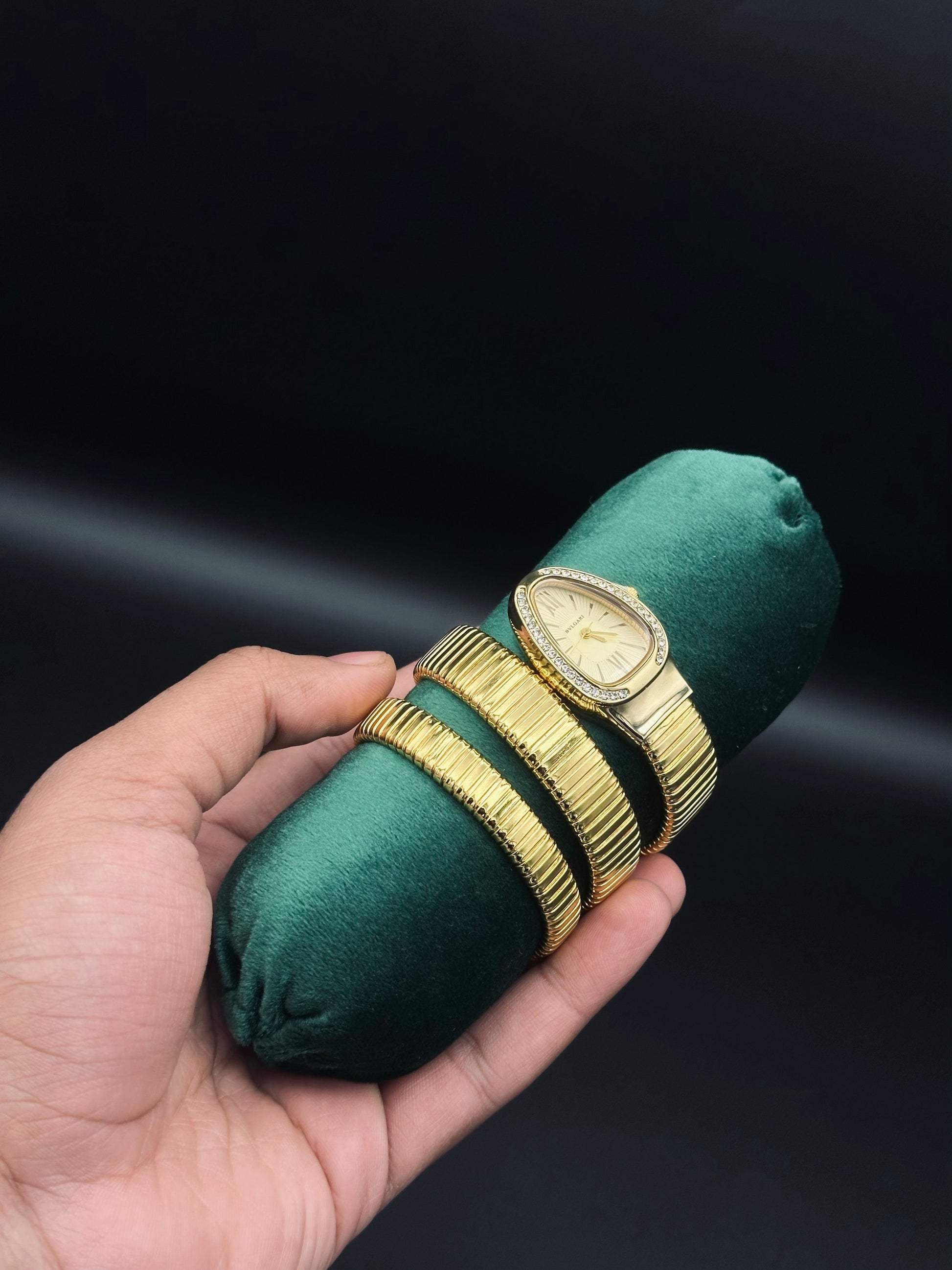 Indulge in luxury with this exquisite ladies watch, featuring a captivating snake-inspired design that exudes elegance and charm. The finely crafted leather straps wrap gracefully around your wrist, offering both comfort and sophistication. The metal strap detailing adds a touch of modernity, blending strength with femininity.